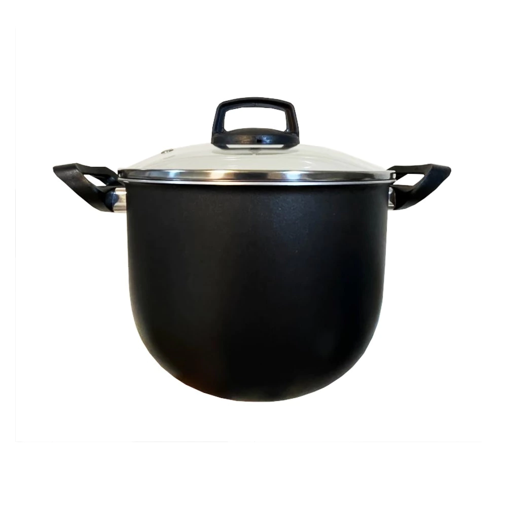Tampa de vidro temperado: permite visualizar o preparo dos alimentos sem precisar levantar a tampa, evitando perda de calor e sabor. Cabos e alças em baquelite antitérmico: proporcionam segurança e conforto durante o manuseio, mesmo com o caldeirão quente. Alumínio de alta qualidade: garante distribuição uniforme do calor, cozinhando os alimentos mais rapidamente.