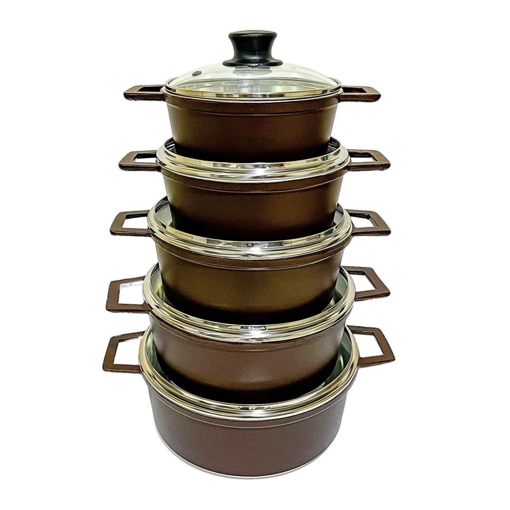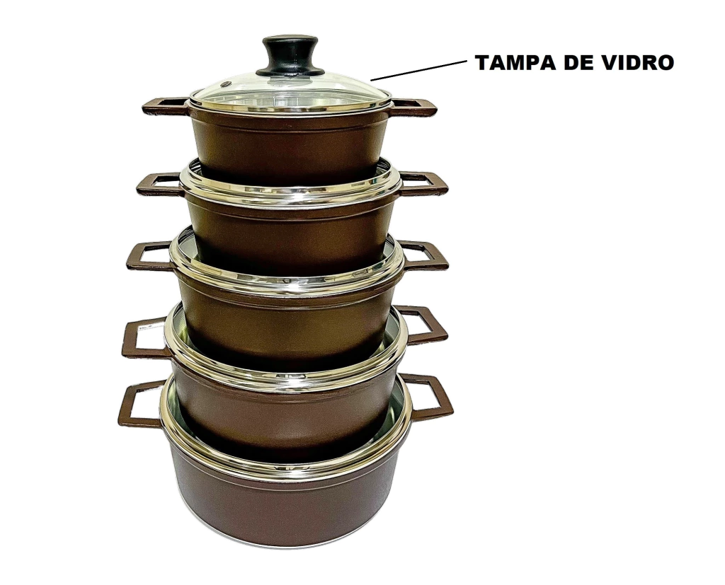 O design elegante e a cor marrom premium complementam qualquer decoração de cozinha, enquanto as tampas de vidro temperado permitem que você visualize o cozimento dos alimentos sem precisar levantar a tampa, preservando o calor e os sabores.