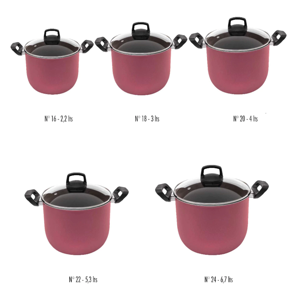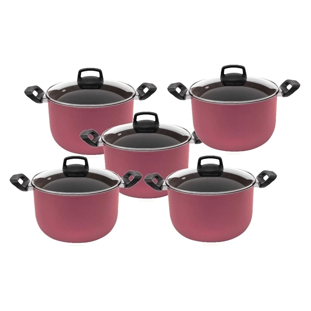 Cozinhe com mais praticidade e estilo com este jogo de 5 caldeirões Staflon. Na vibrante cor cereja, este conjunto é perfeito para renovar sua cozinha.