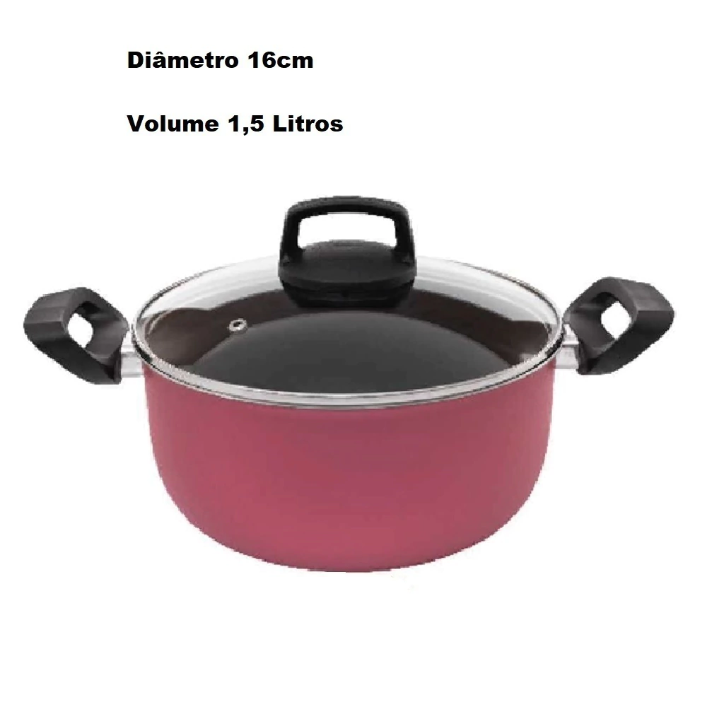 2 panelas antiaderentes (16 cm): Ideais para preparar porções menores, com capacidade de 1,5 litros cada.
