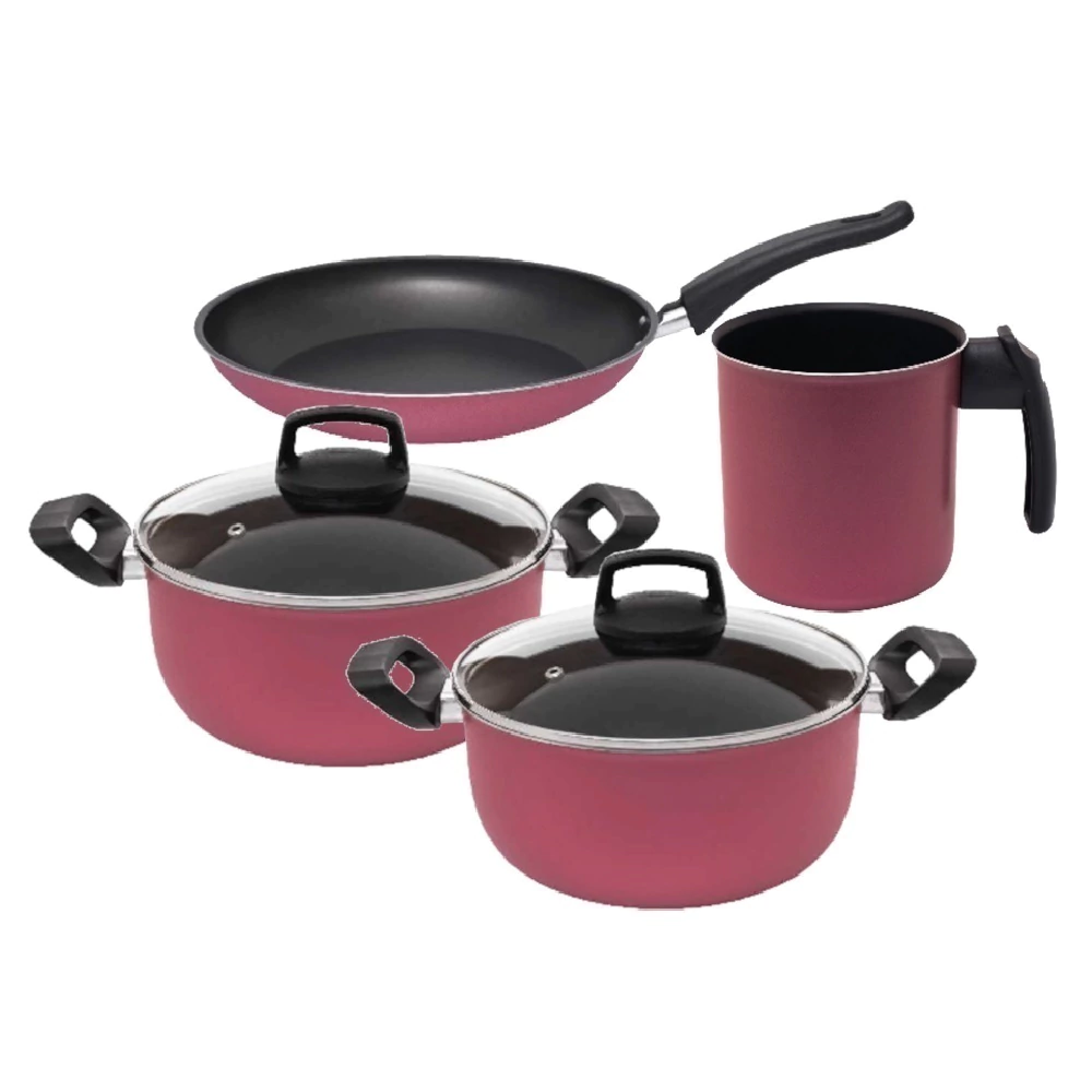 Deixe sua cozinha mais charmosa e funcional com este conjunto de panelas antiaderentes Starflon de 4 peças na cor cereja premium. A tecnologia Starflon garante que os alimentos não grudem, facilitando o preparo das refeições e a limpeza.