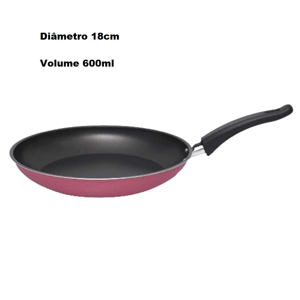 1 frigideira antiaderente (18 cm): Perfeita para ovos, omeletes e grelhados, com capacidade de 600 ml.