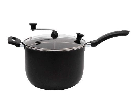 Panela pipoqueira Premium antiaderente com tampa de vidro temperado, Revestimento Antiaderente Starflon 20 cm de diâmetro 4 Litros, é perfeita para preparar aquela deliciosa pipoca que você vai saborear acompanhando o seu filme favorito! Produzida em alumínio com revestimento interno e externo em antiaderente Starflon , ela aquece de maneira rápida e uniforme e evita que os alimentos grudem em sua superfície, o que facilita sua limpeza